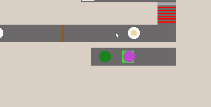 The development for level three began by using a similar structure to that of level one and two, but instead of simple platforms, interlocking science labs were used as the setting for this scene. To fill in the scene as the main obstacles scientists characters were designed using a circle sprite to symbolize a lab coat with a smaller flesh-coloured circle to symbolize a head. These scientists have a scientist movement script attached that lerps the scientist characters between three points known as the end, mid and start. A table with a computer as well as a few white objects fill the rooms, symbolizing scientist equipment as well as contributing as obstacles. To have the scientist interact as enemies instead of simple obstacles, an enemy collision script was designed and added to the player character so that on collision, it checks if the collided object is a part of the enemies layer. If it is, the level is reset. An example of this interaction can be seen in the gif below.